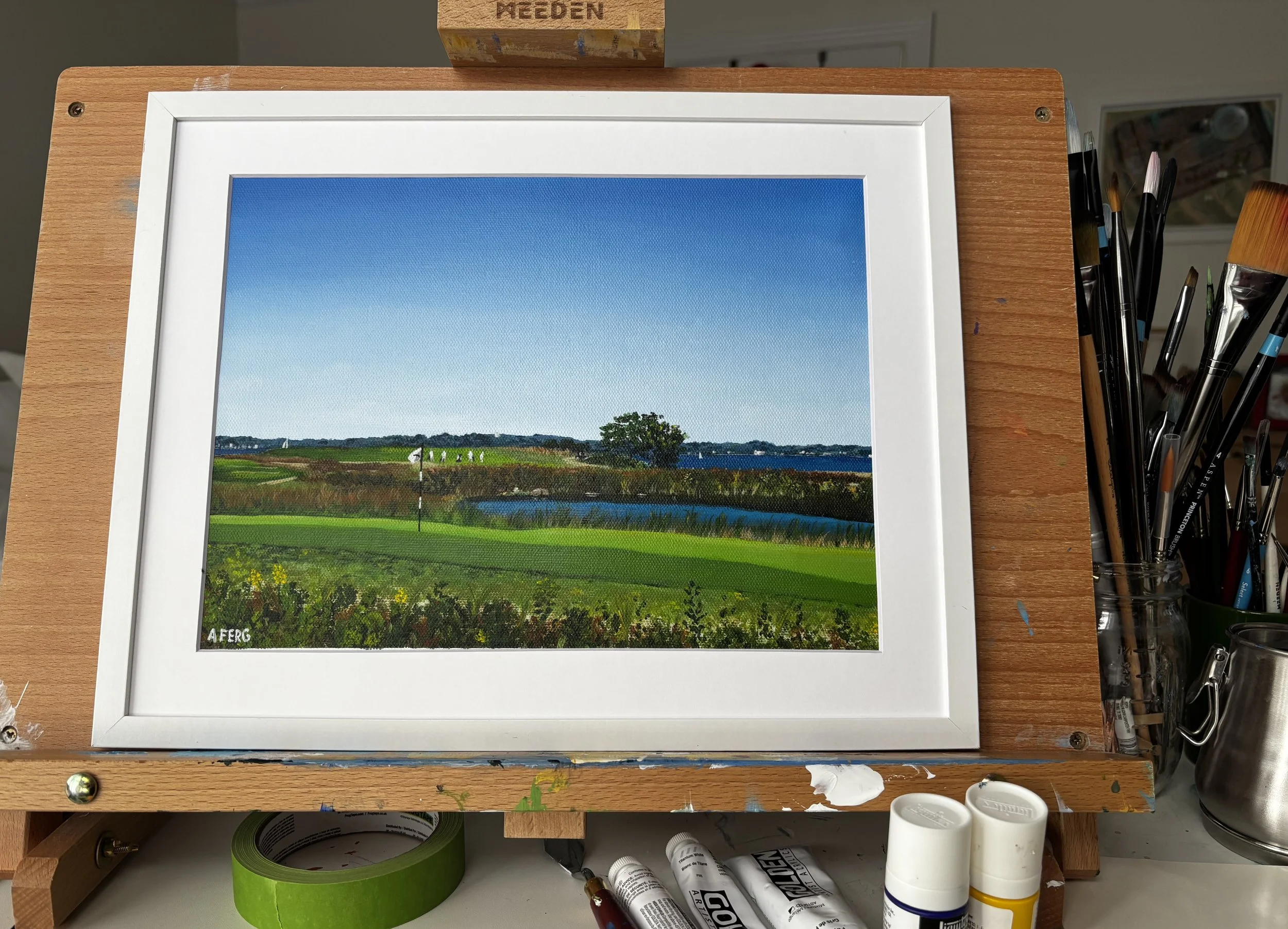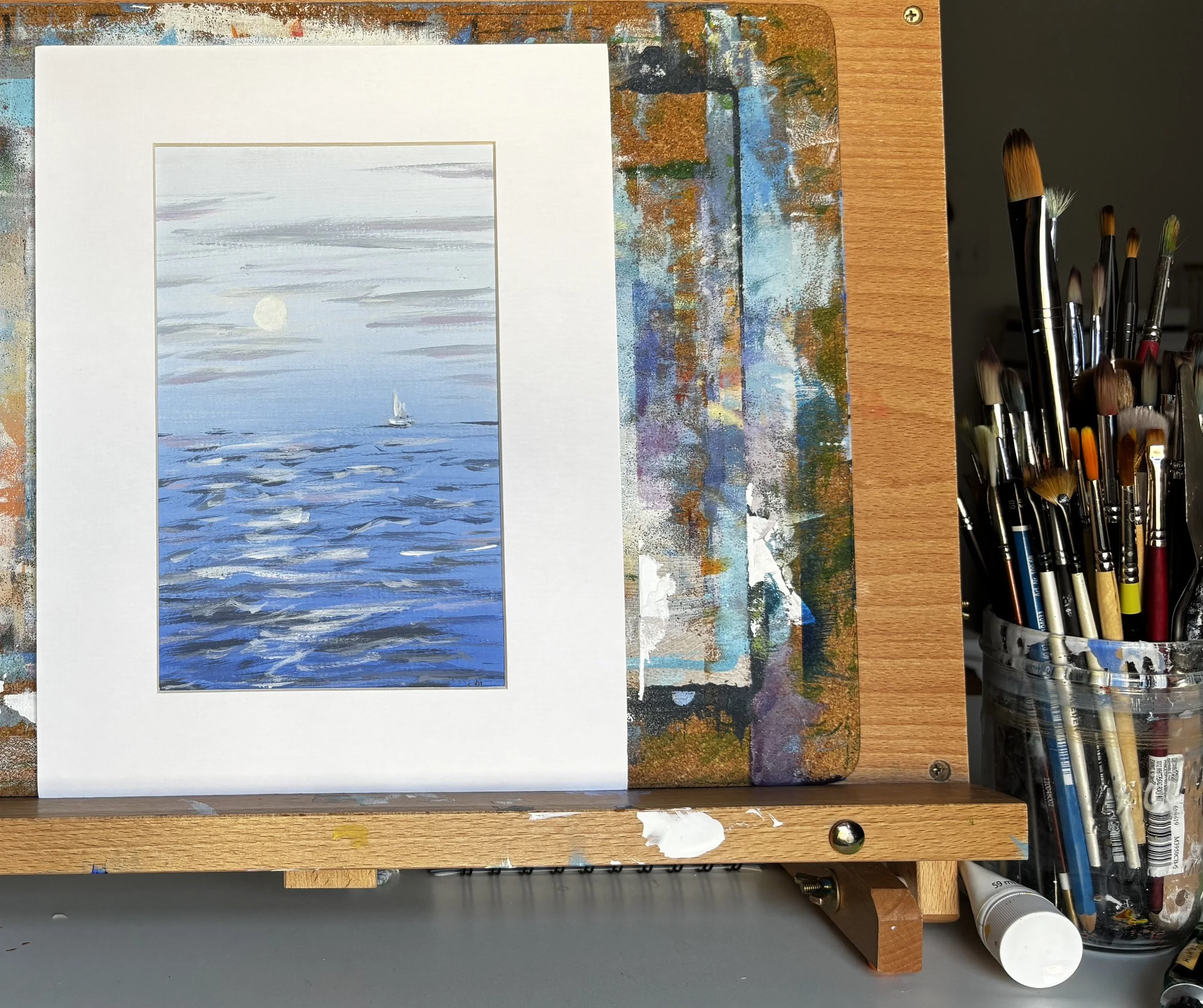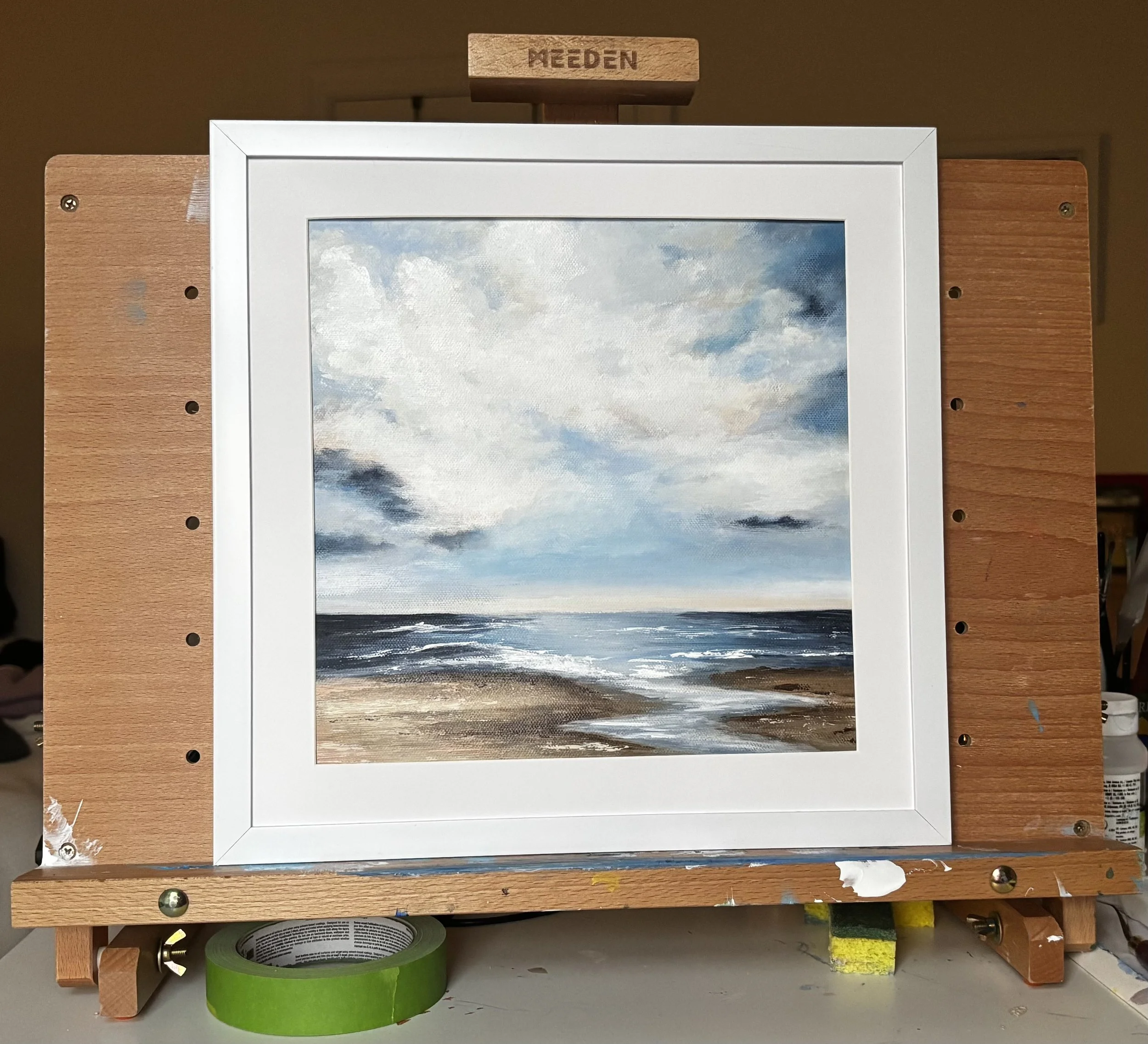 Working primarily in acrylic on paper and canvas, she paints the quiet nooks of the world—the coastlines, mountains, and open skies that stay with us long after we’ve left. Her paintings explore the emotional pull of place and the desire to return.